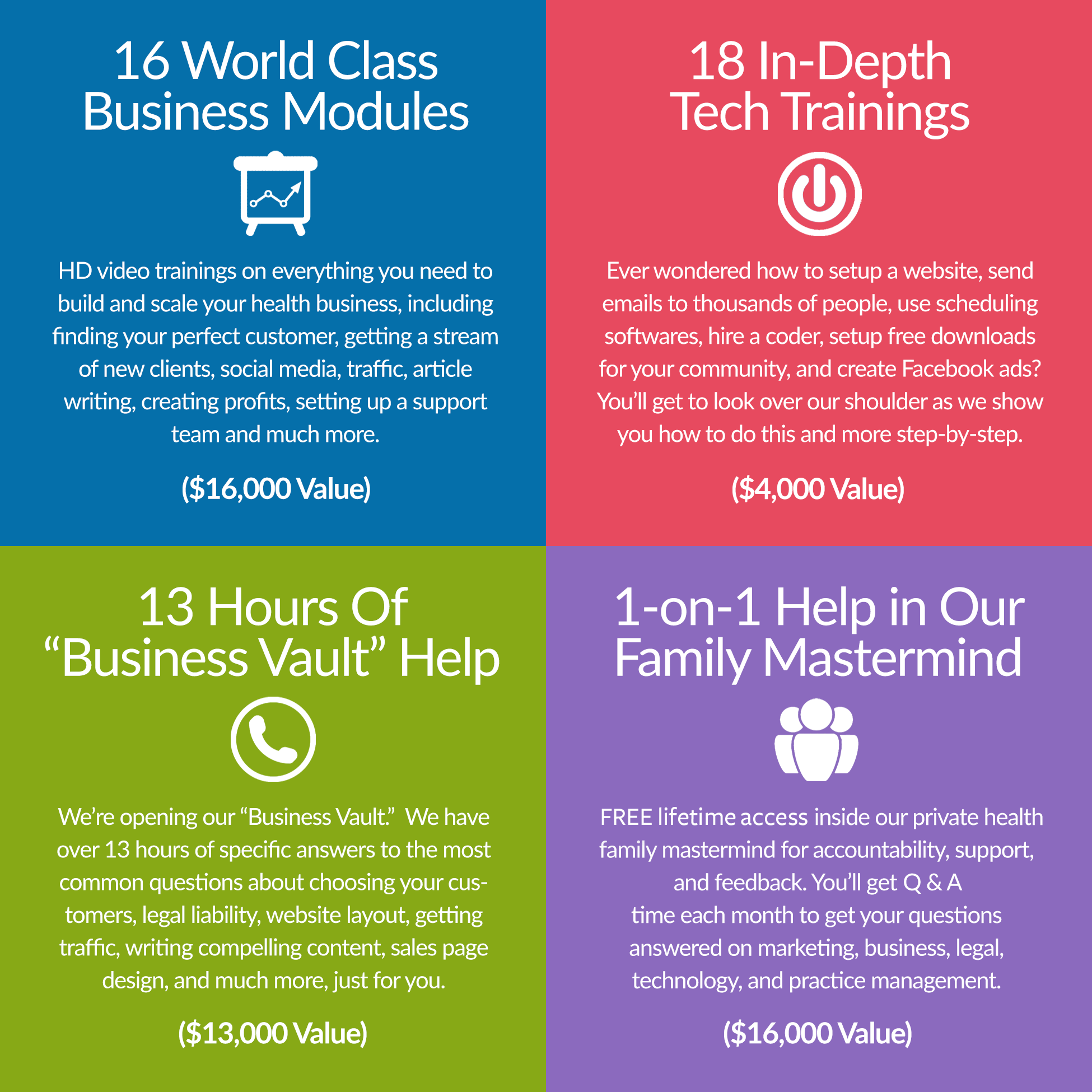 Most of the programs I have seen claim that I'm not getting the number of patients I desire nor am I able to charge the fees that I desire because I'm lacking in certification in X,Y,Z, or knowledge in how to help my patients heal. Not that I am closed to staying current and learning new research and new "healing" skills, but I know for an absolute fact that I know how to help 99% of individuals who are in need of guidance with their health. What I need is a blueprint for an online business that actually works, and you guys are promising to deliver that.