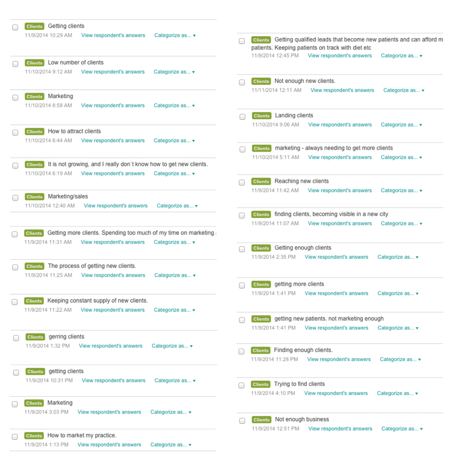 Everyone said their #1 frustration was "Getting Clients and Marketing."